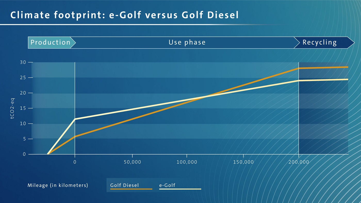 Pour proposer un exemple concrète, Volkswagen a comparé son actuelle e-Golf et sa remplaçante ID Neo prévue en 2020 sur une durée de vie de 200 000 km. L’e-Golf pointe à 119 g/km de CO2 (mix énergétique européen), contre 140 g/km pour une Golf diesel. L’électrique a déjà de l’avance, mais les 62 g/km à l’utilisation sont à baisser à moins de 20 g/km si l’on considère un mix France. À plus long terme, le constructeur allemand vise une réduction de 50 % de l’impact de production des batteries, soit environ -20 % d’émissions de CO2 sur le cycle total.